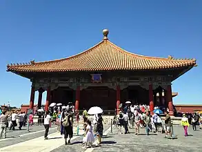 Archaeological findings suggest that the tradition of placing animal figures on roof-ridges has been a practiced custom for a minimum of 2,100 years. Though wenshou serve an aesthetic purpose, they were also used to fight superstitious beliefs through the symbolism of what each figure represents.[1] Today, wenshou serve as cultural artifacts of China, as they are existing physical representations of the traditions, values, and beliefs of the era in which they were erected. [2] Wenshou were also used as symbols of hierarchy and status on Imperial Palaces. For example, the Hall of Supreme Harmony features the most roof ornaments of the palaces within the Forbidden City, and therefore is the most important of the three. In addition to the Hall of Supreme Harmony, wenshou are featured in smaller numbers on the Hall of Central Harmony and the Hall of Preserving Harmony at the Forbidden City.