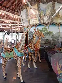 Weona Park Carousel, also known as Dentzel Stationary Menagerie Carousel, is a historic carousel located at Pen Argyl, Northampton County, Pennsylvania. The carousel and its pavilion were built in 1923. The carousel is housed in a wooden, one story, pavilion measuring 20 feet high at center and 80 feet in diameter, with 24 sections each 10 feet 6 inches wide. The carousel has 44 animals and 2 sleighs standing three abreast. They were originally hand carved and painted in the 1890s, c. 1905, and c. 1917. The carousel has a Wurlitzer organ, opus 146. It was constructed by the Dentzel Carousel Company of Philadelphia, Pennsylvania.[2]