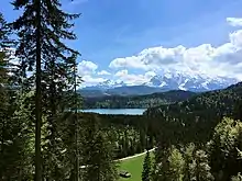 The southern Werdenfelser Land is bordered by the Wetterstein Mountains and the Karwendel. The Zugspitze lies southwest of Garmisch-Partenkirchen and, at 2,962 m above sea level (NN), is the highest peak in Germany. Both the valleys and the Alpine Foreland have been heavily influenced by the last ice age. The lakes were partially formed by groundwater filling the hollows carved out by the glaciers. Later the lakes silted up and formed moors like the Murnauer Moos.