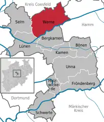 Werne an der Lippe (German pronunciation: [ˈvɛʁnə] ⓘ; Westphalian: Wäen) is a town in the Federal state of North Rhine-Westphalia in the Unna district in Germany. It is located on the southern edge of the Münsterland region near the Ruhrgebiet. The population of Werne is about 32,000.