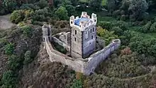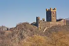 Wernerseck Castle (German: Burg Wernerseck), also called the Kelterhausburg, is a late medieval hill castle in the municipality of Ochtendung in the county of Mayen-Koblenz in the German state of Rhineland-Palatinate. It owes its name to its founder and lord of the castle, the Archbishop of Trier, Werner of Falkenstein (1388–1418). "Wernerseck" means "Werner's corner".