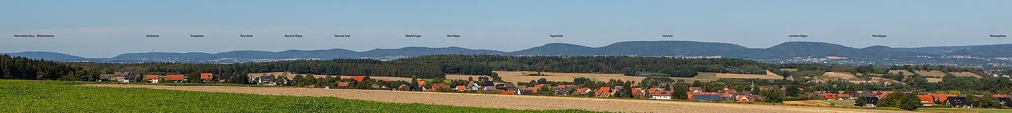 The hills and elevations of the Wesergebirge, as seen from west to east, are given below together with their heights in metres above Normalnull (NN)[2] :