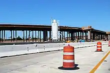 In 2005, federal money was secured for the construction of several projects in the Bakersfield area,[3] including construction of the southern leg of the interchange, connecting the Mojave Freeway to the Westside Parkway. This will also complete construction of the existing interchange, and provide improvements which will be incorporated into the future construction of the other two interchanges. The city would also drop its opposition to the project, with the city council voting to give Caltrans full control over it.[2] The city would retain control over the construction of the Westside Parkway.[4]