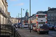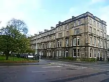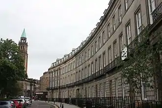 Built as a western expansion of the New Town, the northern part of the West End sits on the Water of Leith river and forms part of Edinburgh's UNESCO World Heritage Site.[6] The West End is contiguous with the rest of New Town and is accordingly included in the New Town Conservation Area.[7] As can be inferred therefore, this area of the city contains many buildings of great architectural beauty, primarily long rows and crescents of Georgian terraced houses.[8] The West End also incorporates many of the New Town Gardens, a heritage designation since 2001.[9]