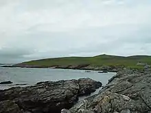 The rock is coarse micaceous, and hornblendic gneiss with granite veins. There is a raised beach above Croo Wick at the southern extremity.[4]
