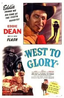 West to Glory is a 1947 American Western film directed by Ray Taylor and written by Elmer Clifton and Robert B. Churchill. The film stars Eddie Dean, Roscoe Ates, Dolores Castle, Gregg Barton, Jimmy Martin, Zon Murray, Alex Montoya, Harry J. Vejar, Casey MacGregor and Billy Hammond. The film was released on April 12, 1947, by Producers Releasing Corporation.[1][2][3]