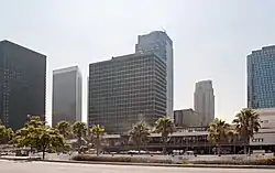 ![]() Demolition of the restaurant facing Santa Monica Boulevard, in Westfield Century City in August 2015. High-rise buildings of Century City are in the background. | |