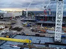 Westfield Doncaster's third redevelopment started with planning approval in May 2004,[3] preliminary works taking place at the centre from September to December 2006, which provided a platform for the main construction works that commenced on 15 January 2007. Doncaster Hill developers met several times with City Council over the next twelve months to discuss creating more sustainable buildings for the community, however little became of the idea of a self-sustaining precinct.[4] It is uncertain whether the wind turbines used at the Manningham Civic Precinct are suitable for powering other buildings.[5] The upgrade was finally completed in October 2008[3] with the centre doubling the previous size, costing A$650 million.[3]