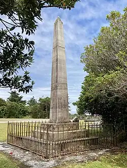 A committee named the Dobson Memorial Fund formed in 1867 and suggested that a memorial be erected to commemorate four men. The committee members could not agree on the form of memorial, the materials to be used, or where to put it. George Sale, who had previously been provincial treasurer of Canterbury, was the committee's treasurer. He took charge and without liaising with fellow committee members, he ordered an obelisk from Sydney.[1][2] The obelisk arrived with the Lizzie Coleson on 16 October 1867 and the first the public knew about the memorial was a notice in the West Coast Times on 24 October:[3][4]