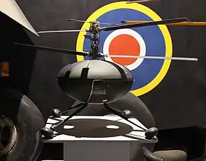 The Westland Wisp was an unmanned coaxial helicopter developed by Westland Helicopters it was powered by a pair of 5hp [2]Korba twin cylinder two-stroke engine.[1]