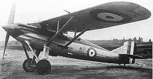 The Wizard was fast and had impressive climb performance, and was tested by the Aeroplane and Armament Experimental Establishment (A&AEE) at RAF Martlesham Heath from the end of January 1928. While the A&AEEs test pilots praised the Wizard's performance, they criticised the pilot's forward view and considered the aileron control loads too heavy.[8] During the summer of 1928, the Wizard made its first public appearance at the Royal Air Force Display at Hendon, among the other new single-seater fighters. The Wizard attracted a great deal of attention, mainly because of its clean lines and generally attractive appearance, as well as its unusual layout. (Parasol monoplane designs had not been in service with the Royal Air Force since the days of the First World War, when a number of Morane-Saulnier's were used. Since then the RAF had used biplanes or at most sesquiplanes for its fighters).[5]