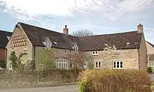 Weston Manor House is a 15th- or early 16th-century building[4] built for Osney Abbey's bailiff. It was built within a 13th-century moat, two sides of which survived until they were filled in. The house was re-fronted in the 16th century and entrance hall has a Tudor fireplace from about this period. In 1665 the house was assessed at 20 hearths for Charles II's hearth tax. The panelling of the drawing room dates from the reign of William III and Mary II just before the end of the 17th century.[3] In about 1780 the 16th-century great hall was renovated with a timber roof frame and linenfold panelling transferred from Notley Abbey in Buckinghamshire.[4] The 16th century front was replaced in about 1820[4] and the Hon Rev FA Bertie had the house altered and renovated in 1851.[3] Weston Manor is now a hotel.[5]