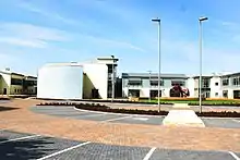 In 1998, the college renovated the Knightstone Campus to soften and modernise its reception's appearance.[37] The college's entrance was originally located on the first floor, accessible by a flight of stairs located on the college's southern, Knightstone Road facing elevation. The renovation moved the entrance to the ground floor and relocated it on the college's east elevation, facing Lower Church Road.[37]