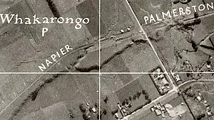 A railway deviation, known as the Whakarongo Deviation, between Milson and the station was originally planned in the 1920s. Work was begun but was stopped for World War Two and the track uplifted. This deviation followed along McLeavey Drive, and now borders the Kelvin Grove Cemetery and Linklater reserve.[11] It would have been 2 mi 11 ch (3.4 km) via the Whakarongo deviation.[12] The deviation was estimated to cost £50,000.[13]