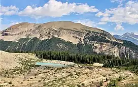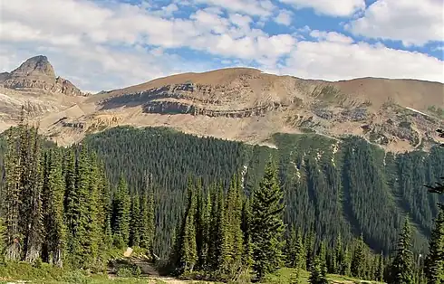 Whaleback Mountain is composed of sedimentary rock laid down during the Precambrian to Jurassic periods. Formed in shallow seas, this sedimentary rock was pushed east and over the top of younger rock during the Laramide orogeny.[6]