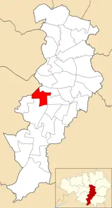Whalley Range is an area of Manchester, England, about 2 miles (3.2 km) southwest of the city centre. The population at the 2011 census was 15,430.[1] Historically in Lancashire, it was one of the earliest of the city's suburbs, built by local businessman Samuel Brooks.