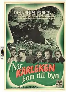 When Love Came to the Village (Swedish: När kärleken kom till byn) is a 1950 Swedish drama film directed by Arne Mattsson and starring Sven Lindberg, Ruth Kasdan and Edvin Adolphson.[1] It was made at the Centrumateljéerna Studios in Stockholm and on location in Gamleby and Västervik. The film's sets were designed by the art director P.A. Lundgren. It is noted for its more traditional depiction of romantic scenes compared to Mattsson's One Summer of Happiness the following year which featured nudity.[2]