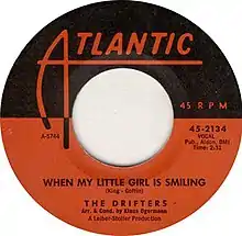 At the time of recording the song on October 26, 1961, the Drifters comprised Charlie Thomas (tenor), Rudy Lewis (tenor), Dock Green (baritone) and Tommy Evans (bass). On "When My Little Girl Is Smiling", Charlie Thomas sang lead.[1][2] The recording took place in Atlantic Studios, 157 W 57th Street, New York City, with guitarist Billy Davis and other session musicians, arranged by Klaus Ogermann, and produced by Jerry Leiber and Mike Stoller.[3] Released as a single by Atlantic Records in February 1962, it reached No.28 on the Billboard Hot 100.[2]