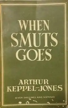When Smuts Goes is a dystopian novel by Dr. Arthur Keppel-Jones. The novel is set during a future history of South Africa, following the ascension of Afrikaner nationalists and their increasingly destructive quest for total apartheid. It foreshadowed the fall of Jan Christiaan Smuts and his United Party administration, a rupture in ties with the British Commonwealth, and the declaration of a Second South African Republic.[1] Presiding over the regime which follows is Obadja Bult, a dominion theologian influenced by the ideals of the former Ossewabrandwag. His blunt authoritarian streak gives spark to racial conflict—culminating in foreign intervention and troubled majority rule.