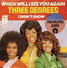 "When Will I See You Again" is a song released in 1974 by American soul group The Three Degrees from their third album, The Three Degrees. The song was written and produced by Kenny Gamble and Leon Huff. Sheila Ferguson sang the lead, accompanied by Fayette Pinkney and Valerie Holiday. Billboard named the song number 67 on their list of 100 Greatest Girl Group Songs of All Time.[1]