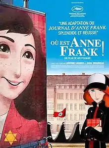 Where Is Anne Frank is a 2021 animated magic realism[5] film directed by Israeli director Ari Folman.[6][7] The film follows Kitty, Anne Frank's imaginary friend to whom she addressed her diary, manifesting in contemporary Amsterdam. Seeking to learn what happened to her creator, Kitty attracts worldwide attention and interacts with undocumented immigrants.[8]