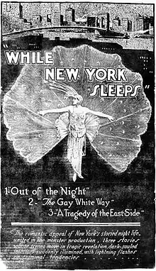 - ↑ "An Innovation Is Promised in While New York Sleeps: Big Special to Be Issued in September - Night Life in Metropolis Is Depicted in Picture Directed by Brabin". Exhibitors Herald. New York City: Exhibitors Herald Company. 11 (7): 97. August 14, 1920.