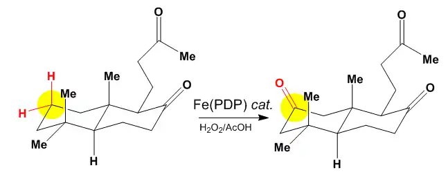 - ↑ Chen,K (2001). "Stereospecific alkane hydroxylation by non-heme iron catalysts: mechanistic evidence for an Fe=O active species". J. Am. Chem. Soc. 123 (26): 6327–6337. doi:10.1021/ja010310x. PMID 11427057.