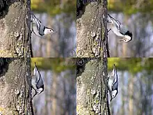 - ↑ Fujita, M.; K. Kawakami; S. Moriguchi & H. Higuchi (2008). "Locomotion of the Eurasian nuthatch on vertical and horizontal substrates". Journal of Zoology. 274 (4): 357–366. doi:10.1111/j.1469-7998.2007.00395.x.