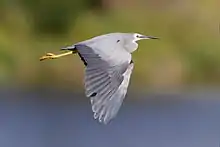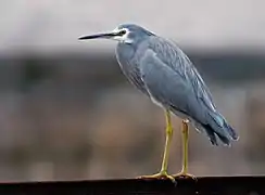 The white-faced heron (Egretta novaehollandiae) also known as the white-fronted heron,[2] and incorrectly as the grey heron,[3] or blue crane,[2] is a common bird throughout most of Australasia, including New Guinea, the islands of Torres Strait, Indonesia, New Zealand, and all but the driest areas of Australia.
