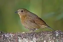 The white-tailed robin (Myiomela leucura) is an Old World flycatcher in the family Muscicapidae. It ranges across the northern regions of the Indian subcontinent and adjacent areas of Southeast Asia. It is found in Bangladesh, Bhutan, Cambodia, India, Laos, Malaysia, Myanmar, Nepal, Taiwan, Thailand, and Vietnam. Its natural habitats are subtropical or tropical moist lowland forest and subtropical or tropical moist montane forest.