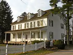 Originally built and operated between 1710 and 1720 as the Francis Jones Tavern, this historic house was the residence of the Slaymaker family between 1779 and 1999. It is a 2+1⁄2-story, five-bay building that was created using stuccoed limestone. It is topped by a gable roof with dormers and was built in four phases: the 1710-20 log cabin, a two-room addition in 1790, a large Federal style addition in 1807 and the west wing addition in 1923, which includes a ballroom. The mansion and grounds were considered a significant landmark by residents of the Pequea Valley during the eighteenth and nineteen centuries. The house's status as a prominent marker on the Philadelphia and Lancaster Turnpike made it suitable as a stop on the Visit of the Marquis de Lafayette to the United States in 1825.[2][3]