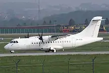 White Eagle Aviation were flying internal United Kingdom flights linking Dundee with Birmingham and Belfast, operated by an ATR42, on behalf of Flywhoosh.