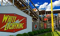 White Lightning is a wooden roller coaster located at Fun Spot America amusement park in Orlando, Florida. Manufactured by Great Coasters International (GCI), White Lightning opened to the public on June 8, 2013, as the first wooden coaster to be built in Orlando. Unlike traditional wood designs, the support structure is made of steel to reduce maintenance costs, and it was the first time GCI incorporated the design into one of their coasters. White Lightning has also been well-received, consistently ranking in the top 50 among wooden roller coasters in the annual Golden Ticket Awards from Amusement Today.