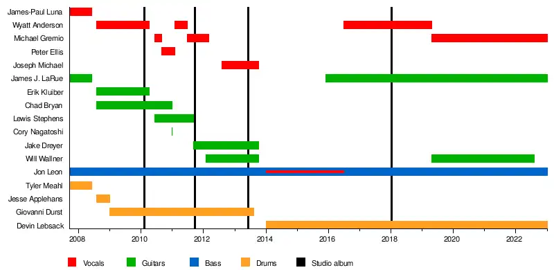 | Past members | Wyatt "Screamin' Demon" Anderson Lewis Stephens Joseph Michael Jake Dreyer Giovanni Durst James-Paul Luna Tyler Meahl Jesse Applehans Peter Ellis Erik Kluiber Chad Bryan[1] |