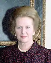 Prime Minister Margaret Thatcher had spent 13 June at the Royal Navy's Northwood Headquarters in Hertfordshire, observing the war's final battles. On the morning of 14 June, she held a tense meeting with her war cabinet, whose members were expecting news of an Argentine collapse.[7] The first reports of white flags over Port Stanley had reached London by around 1 pm BST (9 am Falklands time). Thatcher, intent on controlling the moment of the announcement, imposed a press blackout. She wanted the report to be broadcast live on the ITN News at Ten, snubbing the earlier BBC Nine O'Clock News.[8]