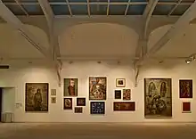 The Whitechapel Gallery is a public art gallery in Whitechapel on the north side of Whitechapel High Street, in the London Borough of Tower Hamlets. The original building, designed by Charles Harrison Townsend, opened in 1901 as one of the first publicly funded galleries for temporary exhibitions in London. The building is a notable example of the British Modern Style.[2] In 2009 the gallery approximately doubled in size by incorporating the adjacent former Passmore Edwards library building. It exhibits the work of contemporary artists and organizes retrospective exhibitions and other art shows.[3]