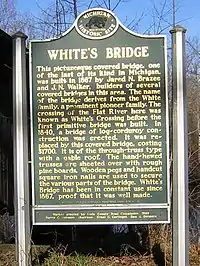 Until 2013, White's Bridge was arguably[5] the oldest covered bridge still using parts of the original structure in Michigan.