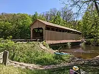 Whites Bridge (alternatively White's Bridge) is a 120-foot-long (37 m) Brown truss covered bridge, originally erected in 1869 in Keene Township, Michigan, United States, near Smyrna on the Flat River. Carrying Whites Bridge Road across the Flat River, it is located north of the Fallasburg Bridge and south of Smyrna. The original bridge was among the area's best-known 19th century structures.[2] The bridge was completely destroyed by fire, on the morning of July 7, 2013 (police deemed the case arson). In July 2016, approval was granted for rebuilding a replica bridge,[3] which was completed in April 2020.