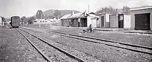 The station had a moderately long passenger platform, small goods yard, goods shed, ticket office and locomotive shed.[1]