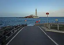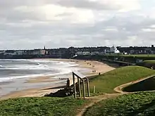 St Mary's Island, a tidal island at the northern tip of the town, is the site of a lighthouse, one of the town's landmarks. Coal seams are exposed in the cliffs next to the beach just North of St Mary's Island and it is possible to pick up coal from the beach at low tide. The coal seams in the cliffs extend all the way to Seaton Sluice.[7]