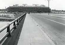 The bridge and approaches on the west side were built through what had been planned as Anacostia Park, a recreation area and National Sports Center. Construction of the bridge required redesign of that park, and abandonment of the Kingman Lake feature of the plan.[37] The western approach included an ellipse that was to serve as a parade ground, but by 1957 planners were already viewing it as a stadium site.[38]