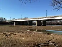 The Whitney Young Memorial Bridge is a bridge that carries East Capitol Street across the Anacostia River in Washington, D.C. in the United States. Finished in 1955, it was originally called the East Capitol Street Bridge. It was renamed for civil rights activist Whitney Young in early 1974.[3][4] The bridge is 1,800 feet (550 m) long, its six lanes are 82 feet (25 m) wide, and it has 15 spans resting on 14 piers.[5][6]
