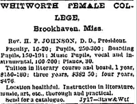 Whitworth Female College was a Methodist women's college in Brookhaven, Mississippi, founded in 1858 by Milton Whitworth. It is a Mississippi Landmark.
