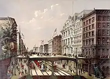 In 1868, Bloomingdale Road between 59th Street (at the Grand Circle, now Columbus Circle) and 155th Streets would be paved and widened, becoming an avenue with landscaped medians.[10] It was called "Western Boulevard"[11] or "The Boulevard".[10] An 1897 official map of the city shows a segment of what is now Broadway as "Kingsbridge Road" in the vicinity of Washington Heights.[12]