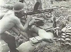 ![]() A Bren gunner covers a patrol from the 47th Battalion on Bougainville, January 1945 | |