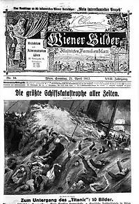 The sinking of RMS Titanic as illustrated on the 21 April 1912 issue of Wiener Bilder