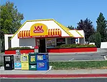 Wienerschnitzel is an American fast food chain that specializes in hot dogs. The company was founded in 1961 by former Taco Bell employee John Galardi as Der Wienerschnitzel. Despite the name, the company does not ordinarily sell Wiener schnitzel, doing so once as a promotion.[2] Wienerschnitzel locations are found predominantly in California and Texas; others are found in Arizona, Arkansas, Colorado, Illinois, Louisiana, New Mexico, Nevada, Utah, and Washington. Outside the United States of America, there are stores located in Guam,[3] Panama, and Chile.[4]