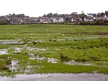The bay is broadly triangular in form, widening to the southeast and with the estuary of the River Cree entering from the northwest at its head. The inner parts of the bay are characterized by large expanses of salt marsh and mudflats.[1] The River Bladnoch flows into the estuarial section of the Cree near Wigtown. The Water of Fleet is a third significant river which enters Wigtown Bay via Fleet Bay on its eastern shore. At the mouth of Fleet Bay are the Islands of Fleet include Ardwall Island, Barlocco Isle and Murray’s Isles.[2] The western shore of the bay is formed by The Machars peninsula. This coast is itself indented by Rigg (or Cruggleton) Bay and by Garlieston Bay on which the village of Garlieston sits. The small town of Wigtown also stands on the western shore of the bay whilst the village of Creetown lies at the head of the bay.