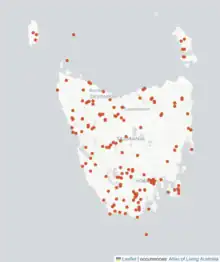 | Distribution of Wijkia extenuata in Tasmania, Australia from the Atlas of Living Australia. | |