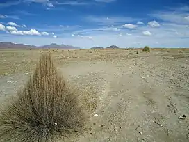 ![]() Asanaki mountain range as seen from Machaqa Marka with Qurimina, Pepitu (4.478 m) and Wila Ch'ankha on the left and Iswaya Island (3.879 m) (lying in the Desaguadero River) in the middle of the picture. | |